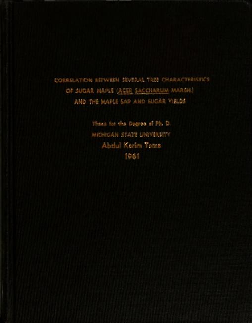 Correlation between several tree characteristics of sugar maple (Acer saccharum Marsh.) and the maple sap and sugar yields