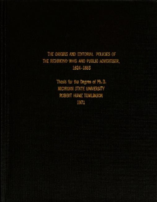 The origins and editorial policies of The Richmond Whig and Public Advertiser, 1824-1865