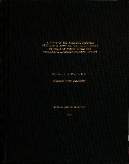 A study of the academic progress of students admitted to the University of Texas at Austin under the Provisional Admission Program 1972-1973