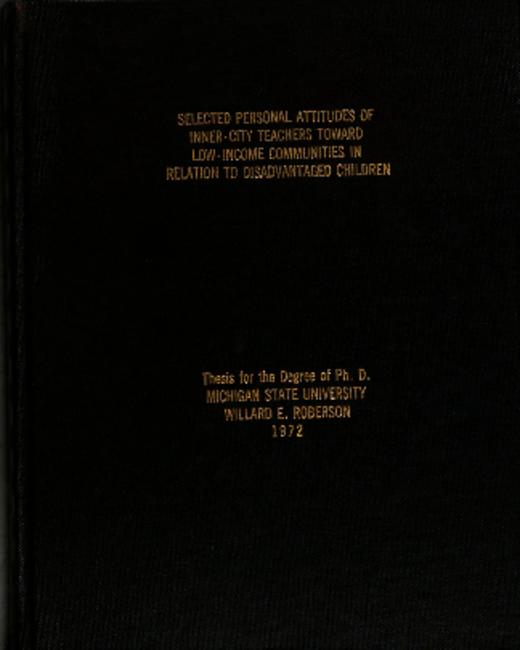 Selected personal attitudes of inner-city teachers toward low-income communities in relation to disadvantaged children