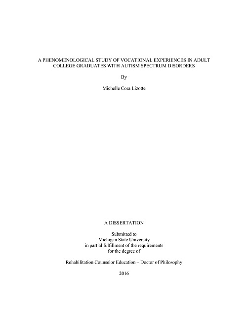 A phenomenological study of vocational experiences in adult college graduates with autism spectrum disorders