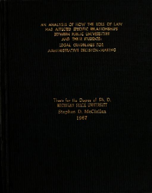 An analysis of how the role of law has affected specific relationships between public universities and their students : legal guidelines for administrative decision-making