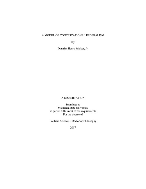 Theoretical problems continue to perplex scholars of American federalism. Despite an avalanche of literature, theoretical accounts of federalism are rare. Most work centers on technical debates on U.S. constitutional law, the economic effects of federalism, the role of courts in policing federal boundaries, or some other specific topic. Rarely are these disconnected subjects fused into a unified account, yet having a broader theory is crucial to resolving specific problems. Any theory of federalism must tell us why federalism is valuable, how and where to divide power between national and subnational government, and how to maintain that division over time. Whereas standard accounts of federalism either ignore or downplay one or more of these issues, this dissertation speaks to each of them. It has particular import for the questions of how federalism is supposed to check governmental power and how best to maintain the federal division of power over time. This dissertation outlines the original structure of federalism in the U.S. Constitution and tracing its evolution over time. It argues that the framers, particularly James Madison, advanced a novel theory of federalism, labelled “contestational federalism.” On this view, federalism is analogous to inter-branch separation of powers in that both share two core characteristics: functional differentiation and contestation. Functional differentiation refers to a difference in function between the two separated levels of government for the purpose of promoting effective government. In other words, “local” objects of legislation are best performed by local governments, while “national” objects are best performed by the central government. Functional differentiation provides clear, defensible standards for determining which powers belong to which level of government. Additionally, federalism was designed to be self-sustaining by means of “contestation” or mutual rivalry using constitutional checks and balances between the levels of government. The founders wanted each level of government to be able to sustain itself using mechanisms similar to the ways in which the three branches of the federal government may check each other. Specific checks and balances included the design of the Senate, Electoral College, and electoral system, which the founders believes would safeguard state power. The concept of constitutional contestation was also applied to military power and grafted into the Constitution in the Second Amendment. Originally, the Second Amendment was intended to preserve a military power for the states so that they could check the federal government militarily if necessary. These safeguards, I show, have failed to adequately protect state power, leading to gradual centralization over the course of American history. The original design of the Senate and Electoral College was soon effaced by historical transformations, particularly the rise of political parties, that nullified their usefulness as safeguards of federalism. Likewise, contrary to the expectations of the founders’ and their disciple Alexis de Tocqueville, voters failed to support candidates favorable to local power. As a result, contestational federalism is virtually defunct.This dissertation concludes by discussing possible means by which contestational federalism may be revived. A variety of reforms, most of which would require a constitutional amendment, are possible to minimize the negative influence of political parties on federalism, strengthen the means of contestation, or otherwise buttress federalism. However, these reforms are unlikely to attract widespread support, rendering the prospects of reinvigorating contestational federalism rather unlikely.
