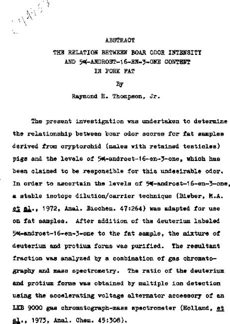 The relation between boar odor intensity and 5[alpha]-androst-16-en-3-one content in pork fat