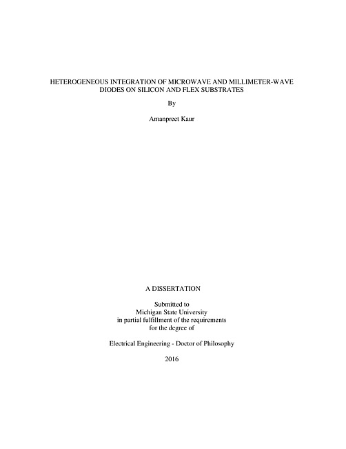 Heterogeneous integration of microwave and millimeter-wave diodes on silicon and flex substrates