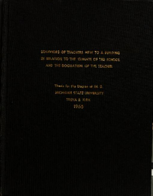 Behaviors of teachers new to a building in relation to the climate of the school and the dogmatism of the teacher