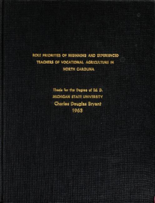 Role priorities of beginning and experienced teachers of vocational agriculture in North Carolina