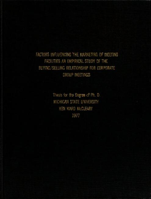 Factors influencing the marketing of meeting facilities : an empirical study of the buying/selling relationship for corporate group meetings