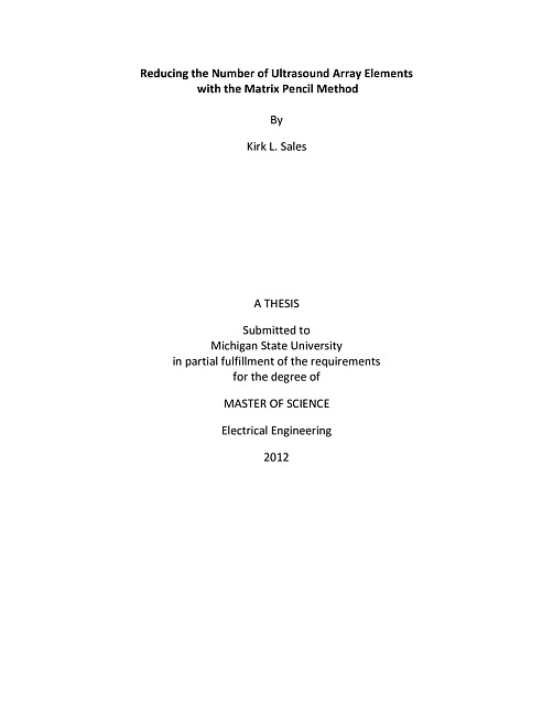 Phased arrays are diversely applied with some specific areas including biomedical imaging and therapy, non-destructive testing, radar and sonar. In this thesis, the matrix pencil method is employed to reduce the number of elements in a linear ultrasound phased array. The non-iterative, linear method begins with a specified pressure beam pattern, reduces the dimensionality of the problem, then calculates the element locations and apodization of a reduced array. Computer simulations demonstrate a close comparison between the initial array beam pattern and the reduced array beam pattern for four different linear arrays. The number of elements in a broadside-steered linear array is shown to decrease by approximately 50% with the reduced array beam pattern closely approximating the initial array beam pattern in the far-field. While the method returns a slightly tapered spacing between elements, for the arrays considered, replacing the tapered spacing with a suitably-selected uniform spacing provides very little change in the main beam and low-angle side lobes.