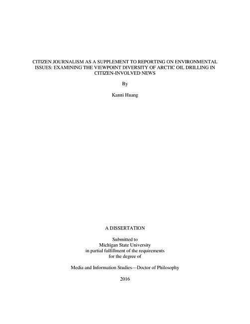 Citizen journalism as a supplement to reporting on environmental issues : examining the viewpoint diversity of arctic oil drilling in citizen-involved news