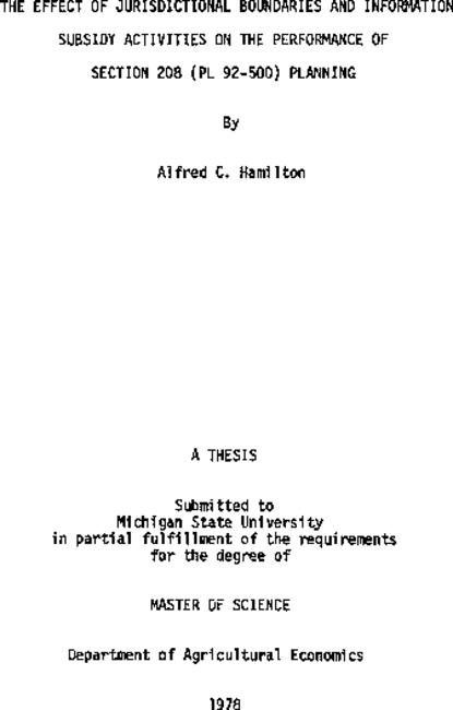 The effect of jurisdictional boundaries and information subsidy activities on the performance of section 208 (PL 92-500) planning