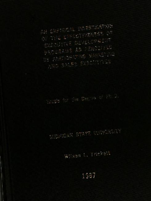 An empirical investigation of the effectiveness of executive development programs as perceived by participating marketing and sales executives