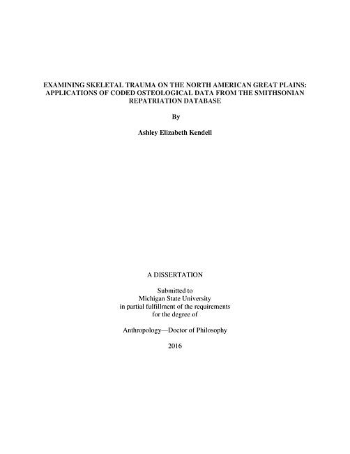 Examining skeletal trauma on the North American Great Plains : applications of coded osteological data from the Smithsonian repatriation database
