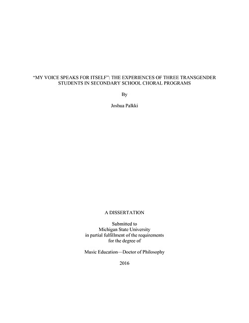 "My voice speaks for itself" : the experiences of three transgender students in secondary school choral programs