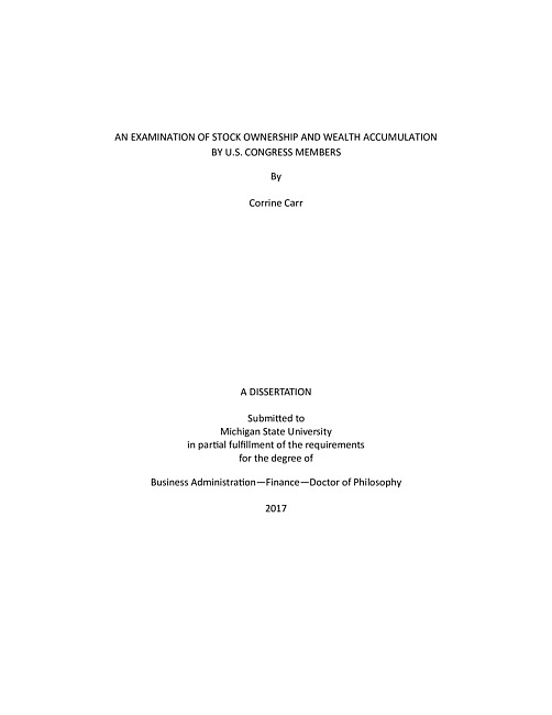 An examination of stock ownership and wealth accumulation by U.S. Congress members