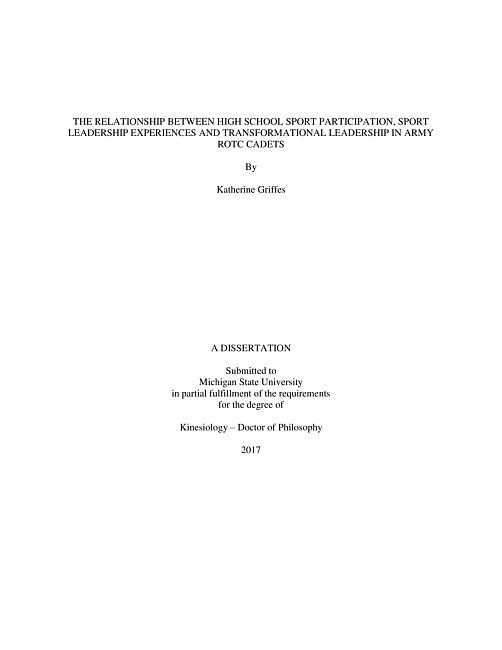 The relationship between high school sport participation, sport leadership experiences and transformational leadership in Army ROTC cadets
