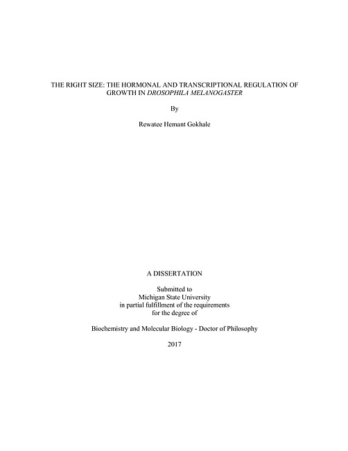 The right size : the hormonal and transcriptional regulation of growth in Drosophila melanogaster