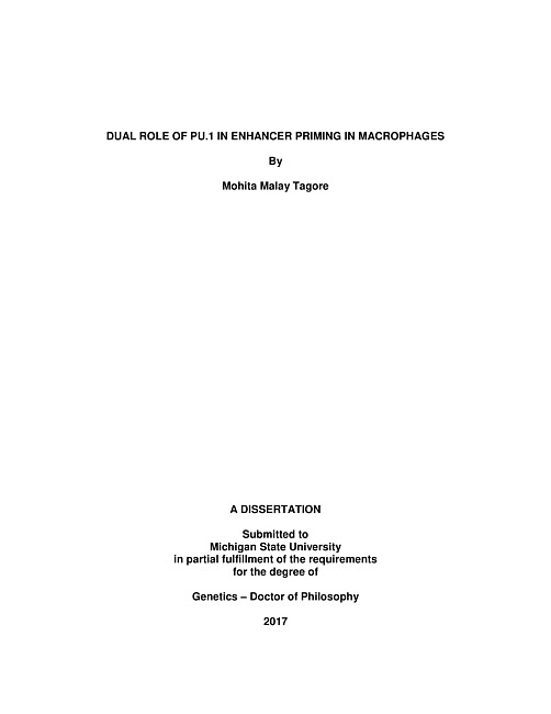 All multicellular organisms arise from a single-celled zygote by the precise execution of a gene expression program which ensures appropriate cell identity. This process is particularly challenging in eukaryotic cells since eukaryotic DNA is packaged by architectural proteins called histones into chromatin, which might act as a barrier to the transcriptional machinery. Macrophages are cells of the immune system which undergo rapid, large scale changes in gene expression in response to bacterial or viral challenge. This makes macrophages an excellent model for studying cell-type specific as well as inducible gene expression. Studies at the genome-wide level have shown that distal regulatory elements like enhancers play an essential role in determining the macrophage inducible response to microbial challenge. Further, lineage-specific transcription factors like PU.1 and C/EBPβ are known to bind inducible enhancers prior to gene induction in resting macrophages. Earlier studies using genome-wide approaches indicate that PU.1 is able to interact with chromatin, thus functioning as a 'pioneer factor' in macrophages. However, not much is known about the mechanism by which PU.1 keeps enhancers accessible prior to gene induction in resting macrophages. Using bone-marrow derived primary mouse macrophage cells as well as PU.1 deficient cell lines, my work highlights the changes in chromatin associated with PU.1 binding during macrophage differentiation as well as in response to bacterial infection. Using a quantitative nucleosome occupancy assay, we reported that PU.1 binding correlates with low nucleosome occupancy at an inducible enhancer in resting macrophages. Further upon induction with an appropriate stimulus, nucleosomes are stably evicted from the distal enhancer and the corresponding gene can be induced. More importantly, my results suggest that lack of PU.1 binding renders regulatory regions (enhancers and promoters) of inducible genes susceptible to heterochromatin formation and silencing by Polycomb repressive complex 2 (PRC2) in differentiated macrophages. PRC2-mediated silencing is also associated with an increase in nucleosome occupancy at the target regions and the corresponding genes cannot be induced. Results obtained from this research will provide important insights into the role of lineage-specific transcription factors at regulatory elements both during normal development and disease.