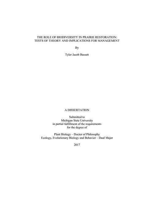 The role of biodiversity in prairie restoration : tests of theory and implications for management