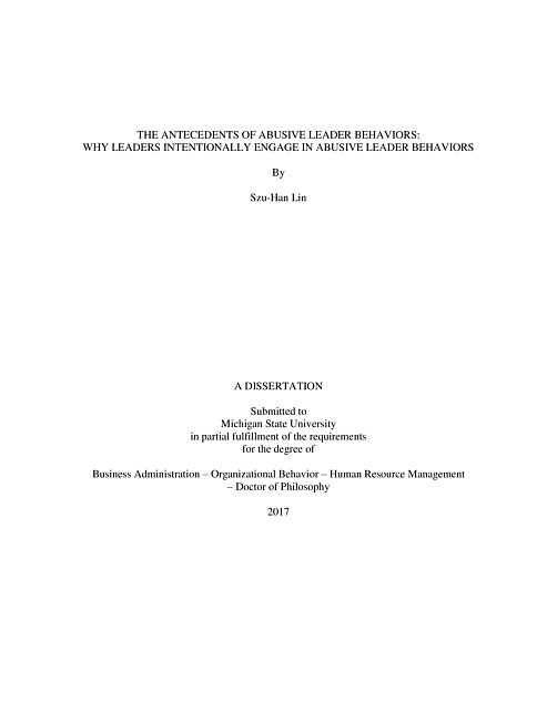 The antecedents of abusive leader behaviors : why leaders intentionally engage in abusive leader behaviors