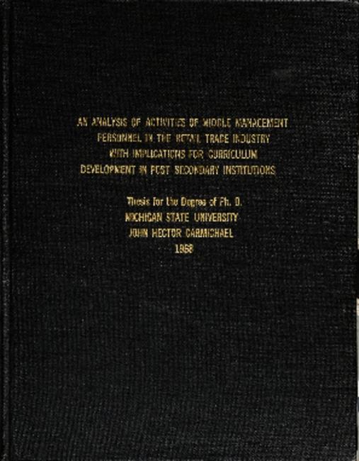 An analysis of activities of middle management personnel in the retail trade industry with implications for curriculum development in post-secondary institutions
