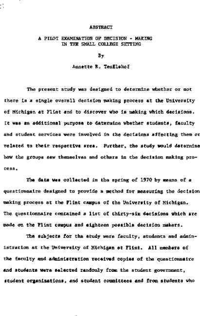 A pilot examination of decision-making in the small college setting
