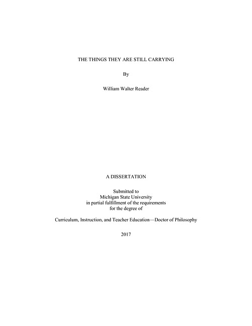 "Much research about the transition experiences of military combat veterans returning to civilian life and college emphasizes the role of identity development and post-secondary institutional support for veteran students during their time of transition. Contemporary discourse tends to frame return experience through the lens of post-traumatic stress disorder. This study uses phenomenological methodology to inquire into the lived experiences of four student veterans attending the rural campus of a Midwestern community college. The focus of the study is to evaluate military-learned habits in light of present transitional circumstances. Analysis of the educational stories rendered from the veterans' sharing of their experiences, from the time they joined the military, through their combat deployments and subsequent return home to civilian life and college, reveals findings that suggest that the veteran students are still carrying with them upon their return habits learned from their time in the military and during deployment. Through analysis, a novel understanding of transition emerges, one that brings into relief the human struggle to grow and find meaning during times of transition. The crucial role of past educative experience and re-learning is examined. The dissertation concludes with recommendations for practice within the walls of community college and beyond."--Page ii.