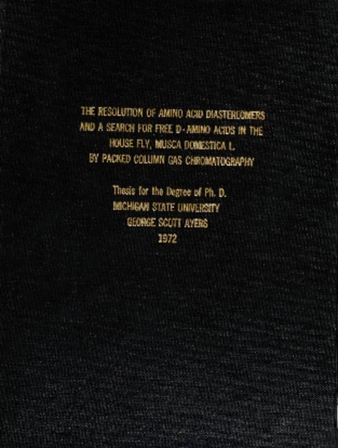 The resolution of amino acid diastereomers and a search for free D-amino acids in the house fly, musca domestica L. by packed column gas chromatography / by