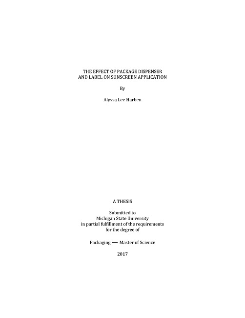 As skin cancer rates rise, sunscreen use is recommended as a way to decrease the risk of developing skin cancer. Studies show that most consumers of sunscreen do not apply the recommended amount of sunscreen to achieve full protection from UV rays. This study investigates the effect of using two different package dispenser types on human behavior in the context of sunscreen application in an effort to quantify differences in application volume. Additionally, labeling interventions designed to either encourage or discourage application of sunscreen were placed on the bottle to test the effectiveness of using label messaging to influence application amounts. Participants were asked to apply sunscreen from different package styles to their arms and legs and complete a survey regarding the perceived risk of developing skin cancer and frequency of sunscreen use and other demographic factors. Results indicate that participants applied more sunscreen from the squeeze bottles than the pump bottles (p<.0001), and that there was no evidence of a discernable difference between different labels. Of the personal characteristics included in the model (including age, gender, skin tone saturation, history of sun burn, and study location) worry about developing skin cancer and frequency of sunscreen use were also significant at α=.05. The overall findings of this study was packaging design affects sunscreen application practices, but labeling warnings are less influential.
