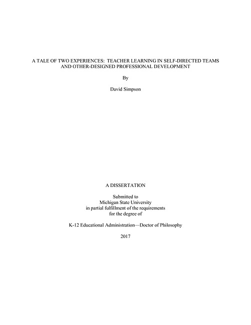 A tale of two experiences : teacher learning in self-directed teams and other-designed professional development