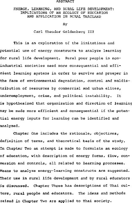 Energy, learning, and rural life development : implications of an ecology of education and application in rural Thailand