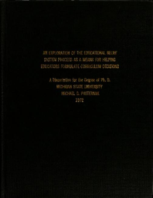 An exploration of the educational belief system process as a means for helping educators formulate curriculum decisions
