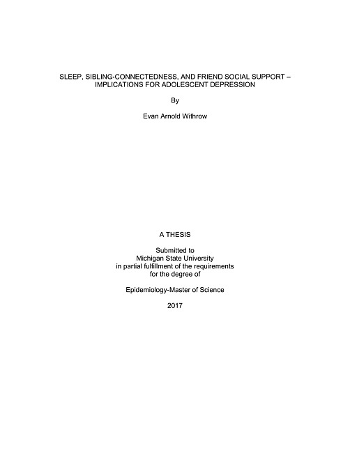 Sleep, sibling-connectedness, and friend social support--implications for adolescent depression