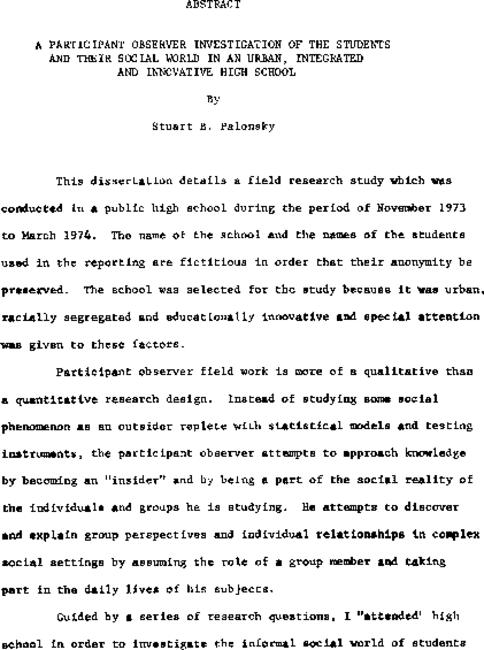 A participant observer investigaton of the students and their social world in an urban, integrated and innovative high school