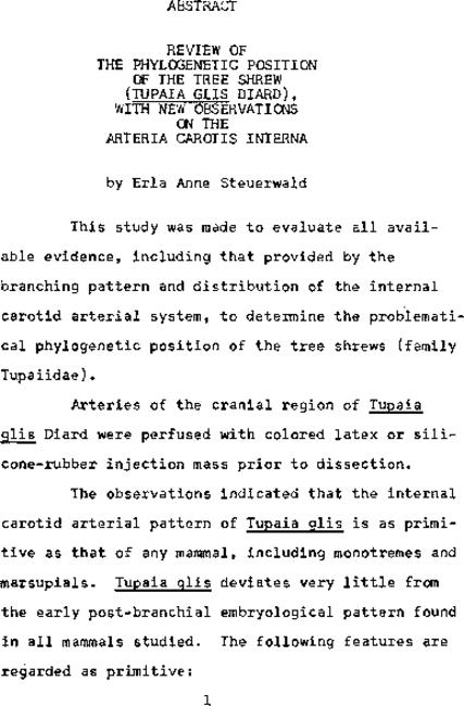 Review of the phylogenetic position of the tree shrew (tupaia glis diard), with new observations on the arteria carotis interna
