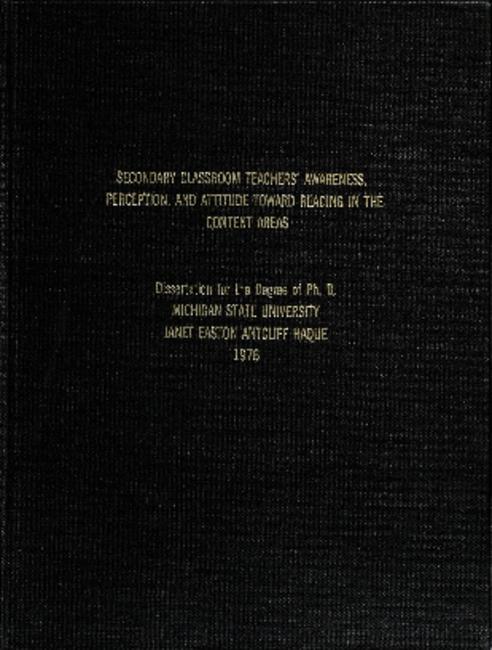 Secondary classroom teachers' awareness, perception, and attitude toward reading in the content areas