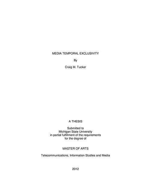 A media product's exclusivity is threatened by the effects of unauthorized distribution of electronic copies. This makes the producer inherit all risk in producing digital media for market. Through the process of applying temporal exclusivity to media in a distribution construct; I have found that firms can regain the upper hand in monetizing the digital media distribution markets. Media Temporal Exclusivity is the economic process in which firms can extract more revenue, and order the distribution of the media good. This is based on the consumer's highest willingness to pay as it relates to their longest willingness to wait. I found that people do volunteer their willingness to pay and willingness to wait; and that in doing so the consumer creates the market itself.
