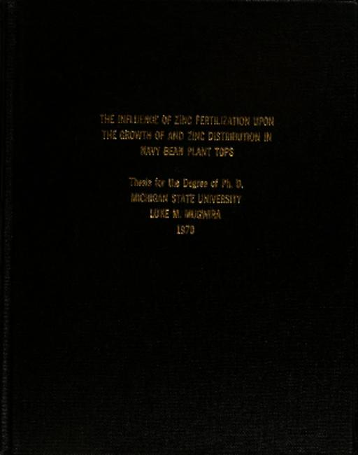 The influence of zinc fertilization upon the growth of and zinc distribution in navy bean plant tops