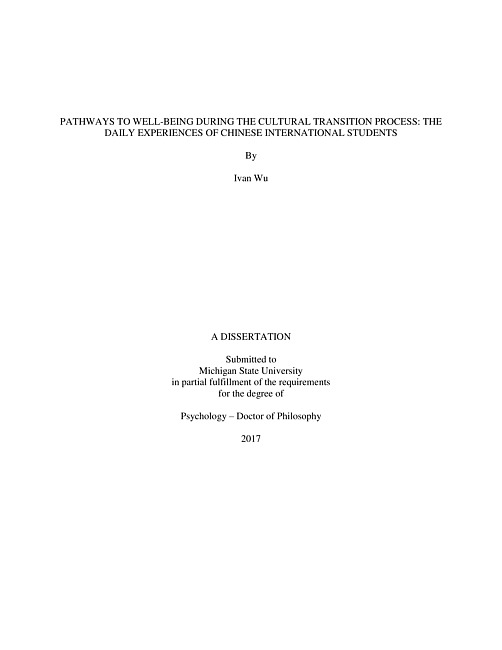 Pathways to well-being during the cultural transition process : the daily experiences of Chinese international students