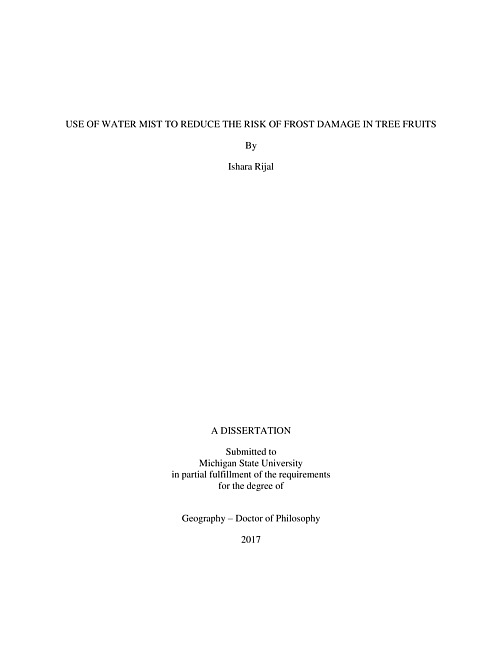 Use of water mist to reduce the risk of frost damage in tree fruits