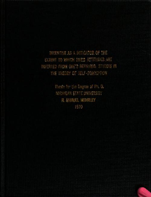 Incentive as a mitigator of the extent to which one's attitudes are inferred from one's behavior : studies in the theory of self-perception