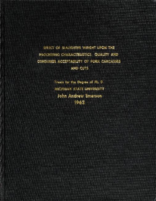 Effect of slaughter weight upon the processing characteristics, quality and consumer acceptability of pork carcasses and cuts