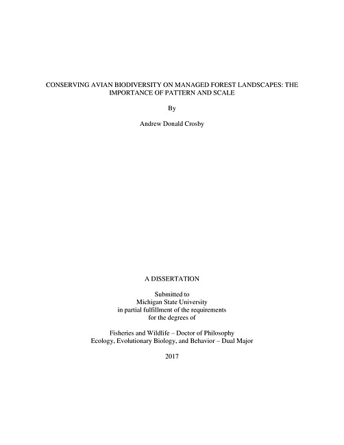 The shift in forest management goals over the last several decades to meet societal demands for more non-timber benefits has led to a move towards ecosystem-based approaches to management, with biodiversity conservation being a major objective. Within this context, maintaining the richness and diversity of bird species on working forest landscapes has continued to be a priority in sustainable forest management. Ecosystems are heterogeneous in space and time, and regional species diversity is maintained by spatial patterns of heterogeneity at multiple scales. Understanding how patterns of heterogeneity in forest composition and structure influence species diversity is crucial to sustainable forest management. However, despite a great deal of research on habitat relationships of forest bird species, there is little understanding of how patterns of heterogeneity across scales influence regional bird species diversity. Therefore, my research goal was to investigate the relationship of bird species diversity to patterns of forest composition and structure across multiple spatial scales on a managed forest landscape. The first chapter investigates how patterns of heterogeneity in stand-level attributes impact patterns of bird community diversity across multiple spatial scales. Chapter 2 demonstrates a novel application of the conservation filters strategy to maintaining avian diversity on managed forests by working at 2 different operational scales. The third chapter looks at monitoring beta diversity in bird communities at multiple spatial scales as an alternative paradigm to species-level strategies for tracking changes in regional biodiversity.The research in these chapters draws several conclusions that are fundamental to the problem of maintaining regional biodiversity on managed forest landscapes. The first is that the relationship of environmental heterogeneity to bird community diversity changes across spatial scales. The second conclusion is that uncommon vegetation community types have a greater relative contribution to regional diversity, and the importance of specific compositional and structural attributes changes among types. Third, quantifying beta diversity of bird communities (differences among spatial units within a region) across multiple scales, using a hierarchical cluster sampling design, reflects environmental heterogeneity and offers an efficient and effective system for monitoring changes in regional biodiversity. The research presented in this dissertation offers an expanded and integrated view of the problem of maintaining biodiversity on managed forests. I have demonstrated that large-scale management systems must explicitly address how forest planning will impact patterns at multiple scales simultaneously, and maintain both homogenous and heterogeneous landscapes at the appropriate scales. My work offers an integrated set of guidelines for biodiversity conservation on managed forests that explicitly accounts for the multiple scales at which biodiversity is generated and maintained. I believe that this research provides ecologists, land managers, and planners with an improved framework for managing forests under the ecosystem management paradigm.