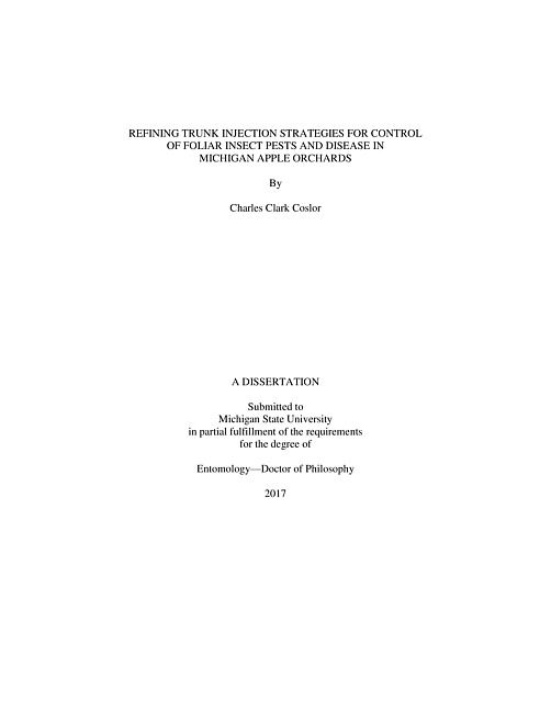 Refining trunk injection strategies for control of foliar insect pests and disease in Michigan apple orchards