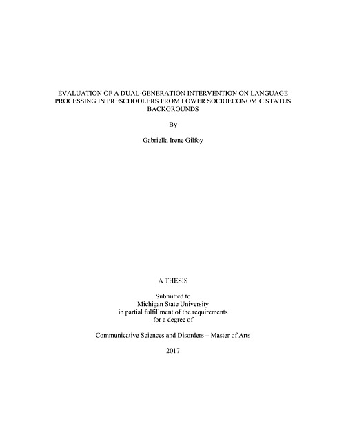 Evaluation of a dual-generation intervention on language processing in preschoolers from lower socioeconomic status backgrounds