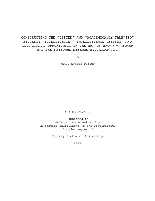 Constructing the "gifted" and "academically talented" student : "intelligence," intellligence testing, and educational opportunity in the era of Brown v. Board and the National Defense Education Act
