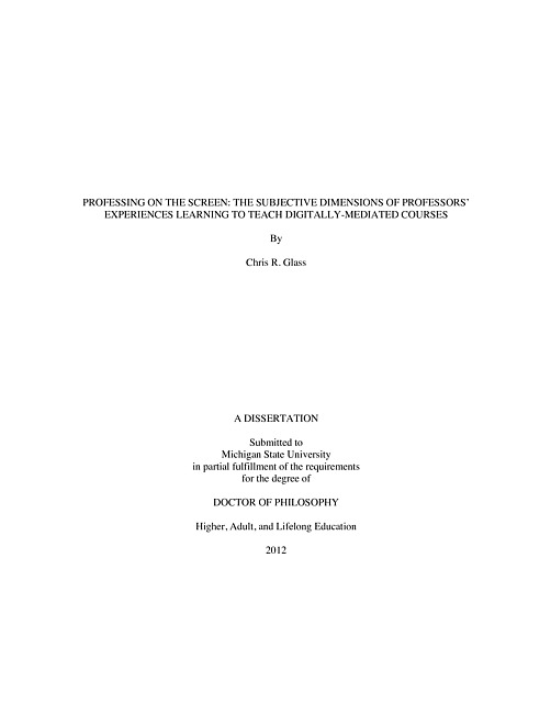 Professing on the screen : the subjective dimensions of professors' experiences learning to teach digitally-mediated courses