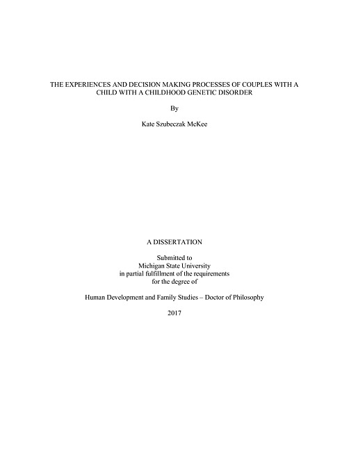 The experiences and decision making processes of couples with a child with a childhood genetic disorder