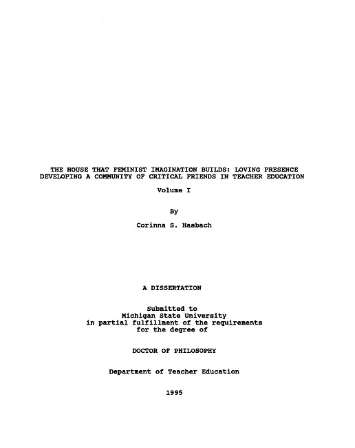 The house that feminist imagination builds : loving presence developing a community of critical friends in teacher education