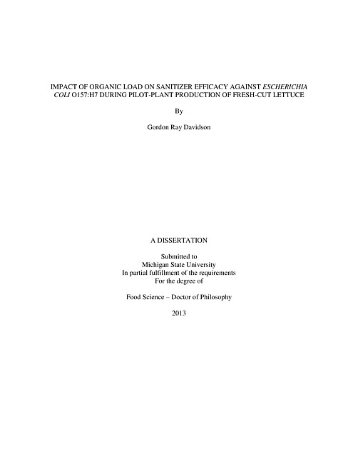 Impact of organic load on sanitizer efficacy against Escherichia coli O157:H7 during pilot-plant production of fresh-cut lettuce